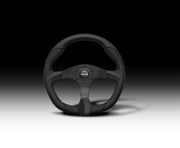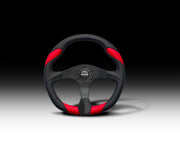 MOMO QUARK STEERING WHEEL - POLYURETHANE BLACK, BLUE OR RED INSERT - 350MM